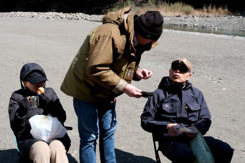 | 3月3日、熊本県阿蘇・白川へ仲間達4人と初釣行しました。結果は、ハッチ無し、ライズ無し、生命反応ゼロの散々な1日となりましたが、久しぶりに川辺でコーヒーを淹れて仲間達との楽しい時間を過しました。 |